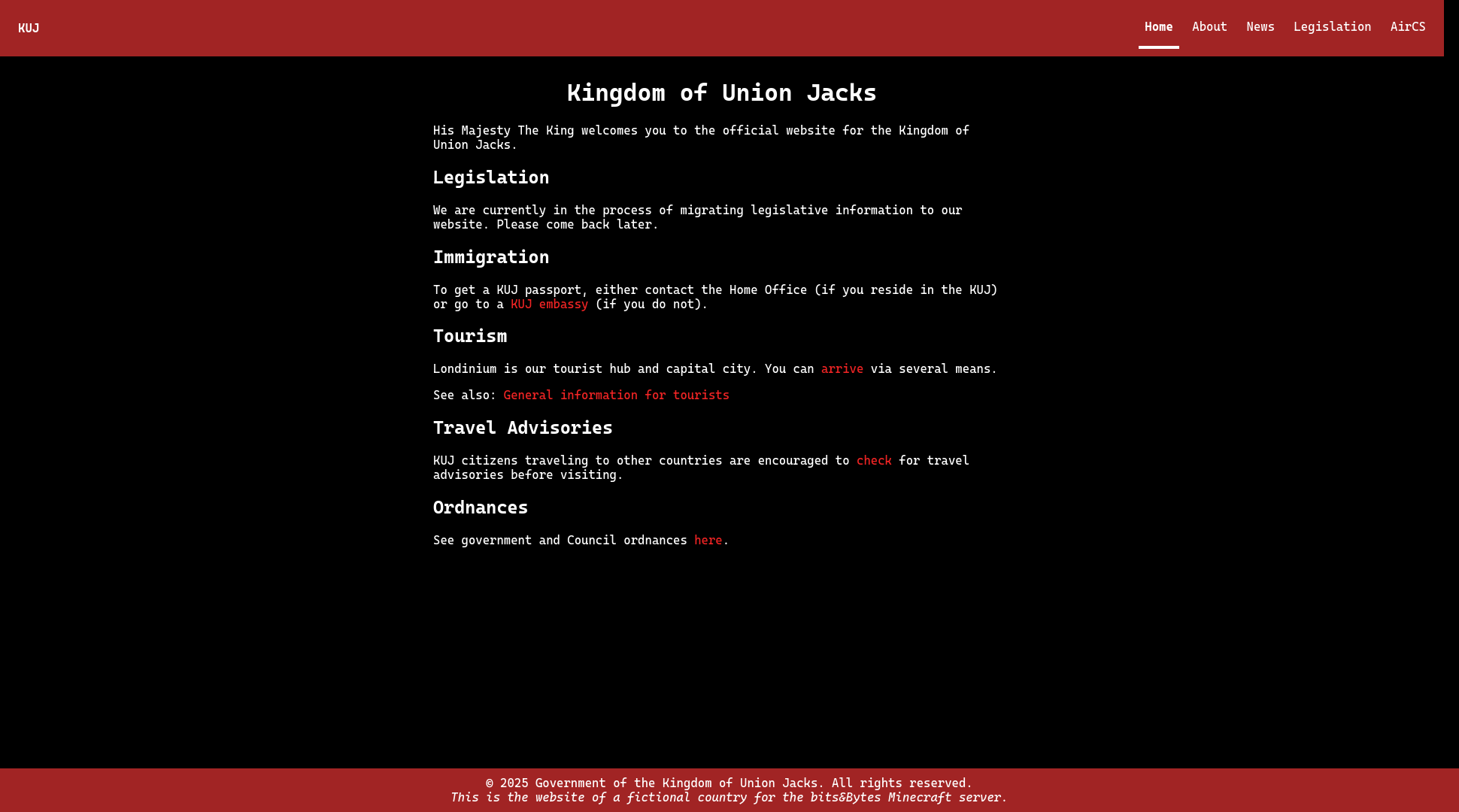 The KUJ government website provides basic information about the country and is intended to be viewed by tourists.